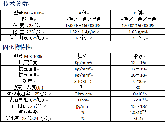 一、MJS-1005環(huán)氧樹脂膠是一種常溫 5 分鐘固化的改性樹脂膠,固化物表面平整、光亮、散熱性好、絕 緣性優(yōu)。具有良好的阻燃性。本品對金屬,合金,塑膠,玻璃,陶瓷等有極強的粘接力,主要應(yīng)用在 LED 燈具,電源(通 信電源,平板電源等)、CRT 顯像管、DY 偏轉(zhuǎn)線圈等高電壓部份的絕緣粘接,密封,固定;亦應(yīng)用于 PCB 敏感元件、 電感線圈、電容、三極管等的固定及粘接。線路板上高電壓焊點的絕緣防護。電源外殼與線圈子的粘接。