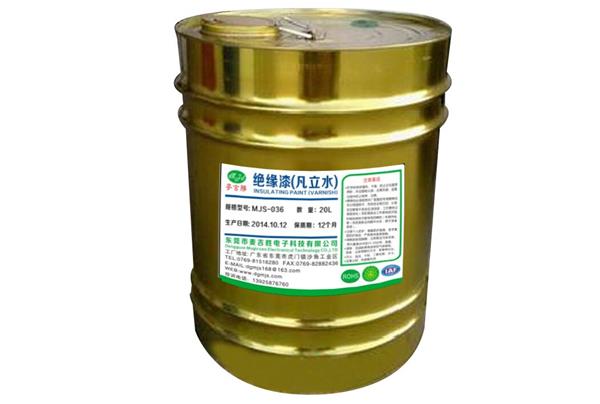 我司生產(chǎn)的MJS-036快干絕緣漆(凡立水)通過歐盟環(huán)保ROHS,主要以樹脂為基礎,配以特殊材料、助劑及溶劑配制而成,能在一定條件下快速固化使被浸漬物的表面形成連續(xù)平整的漆膜以填充其間隙和微孔并粘結成一個堅硬的整體,漆膜堅韌豐滿、透明、緊固性強、硬度高、耐水性耐高溫及絕緣性高,可提高線路板、電機、變壓器及其元器件的使用壽命,確保產(chǎn)品使用的安全性及可靠性,廣泛適用于電感線圈、線路板、線圈繞組、變壓器、中小型電機(馬達)等電器及線材的涂覆。