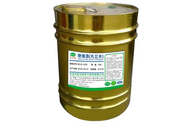 我司生產(chǎn)的MJS-026快干絕緣漆(凡立水)通過(guò)歐盟環(huán)保ROHS,主要以改性高分子樹(shù)脂為基礎(chǔ),配以特殊材料、助劑及溶劑配制而成,能在一定條件下快速固化使被浸漬物的表面形成連續(xù)平整的漆膜以填充其間隙和微孔并粘結(jié)成一個(gè)堅(jiān)硬的整體,漆膜堅(jiān)韌豐滿(mǎn)、透明、緊固性強(qiáng)、硬度高、耐水性耐高溫及絕緣性高,可提高線(xiàn)路板、電機(jī)、變壓器及其元器件的使用壽命,確保產(chǎn)品使用的安全性及可靠性,廣泛適用于電感線(xiàn)圈、線(xiàn)路板、線(xiàn)圈繞組、變壓器、中小型電機(jī)(馬達(dá))等電器及線(xiàn)材的涂覆。