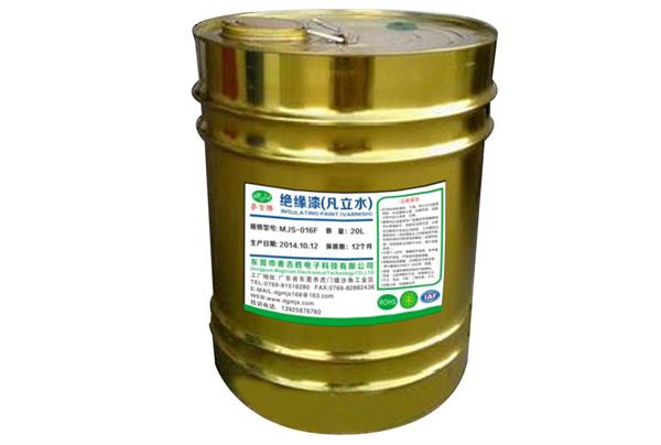 我司生產(chǎn)的MJS-016F快干絕緣漆(凡立水)通過歐盟環(huán)保ROHS,主要以改性樹脂為基礎(chǔ),配以特殊材料、助劑及溶劑配制而成,能在一定條件下快速固化使被浸漬物的表面形成連續(xù)平整的漆膜以填充其間隙和微孔并粘結(jié)成一個(gè)堅(jiān)硬的整體,漆膜堅(jiān)韌豐滿、透明、緊固性強(qiáng)、硬度高、耐水性耐高溫及絕緣性高,可提高線路板、電機(jī)、變壓器及其元器件的使用壽命,確保產(chǎn)品使用的安全性及可靠性,廣泛適用于電感線圈、線路板、線圈繞組、變壓器、中小型電機(jī)(馬達(dá))等電器及線材的涂覆。