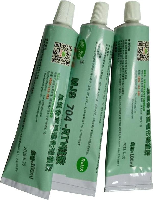單組分RTV704硅膠通過與空氣中的水分縮合反應放出低分子引起交聯(lián),而硫化成高性能彈性體。固化后呈彈性體,具有優(yōu)良的導熱性,電氣性,耐老化,絕緣,防潮不膨脹并且對大多數(shù)金屬和非金屬材料具有良好的散熱粘結性,能對多種電子元器件起到密封粘接和導熱的作用,完全符合歐盟ROHS指令要求。